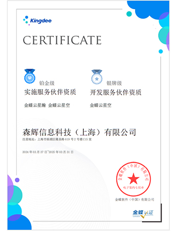 森輝信息科技(上海)科技有限公司成立于2014年2月,是金蝶國際在上海區域優質的鉑金服務商;伙伴編碼20021001,可在金蝶官方網站上查詢。森輝公司是以上海金蝶軟件公司的銷售及實施部人員為班底,與金蝶軟件公司緊密合作,為金蝶新老客戶提供可靠的軟件產品(EAS、云星空、k/3 wise)和優質的服務為己任。